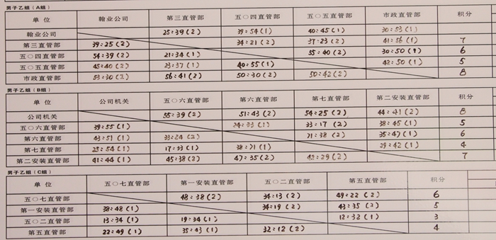 五〇四VS直六——26:4 五〇四VS市政——21:12 直三VS市政——14:10