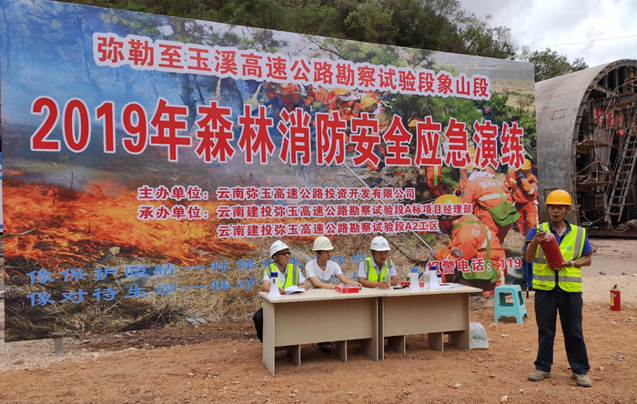 山中森林蔥郁茂密,云南建投彌勒至玉溪高速公路勘察試驗段象山段工地上熱火朝天。工人們熱情似火,但卻把消防安全牢記在心間,6月26日下午,路橋四部彌玉高速象山試驗段項目部在象山隧道一號出口至二號隧道進(jìn)口施工段開展2019年森林消防安全應(yīng)急演練活動,云南交通基建工程監(jiān)理有限公司駐地監(jiān)理趙延剛、彌玉高速項目部全體管理人員、農(nóng)民工代表參加本次活動。 路橋四部彌玉...