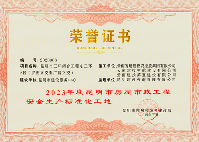 近日,由公司路橋一部承建的昆明市三環(huán)閉合工程東三環(huán)A段項目獲評昆明市住房和城鄉(xiāng)建設(shè)局“2023年度昆明市房屋市政工程質(zhì)量標(biāo)準(zhǔn)化示范項目”及“2023年度昆明市房屋市政工程安全生產(chǎn)標(biāo)準(zhǔn)化工地”。安全就是效益,工程質(zhì)量就是企業(yè)“生命線”。自進(jìn)場以來,項目部始終秉持“安全第一,預(yù)防為主、綜合治理”的方針,樹牢安全發(fā)展理念,壓實安全工作責(zé)任、筑牢安全生產(chǎn)防線,常態(tài)化開展班前安全教育和安全隱患排查整治,狠抓…