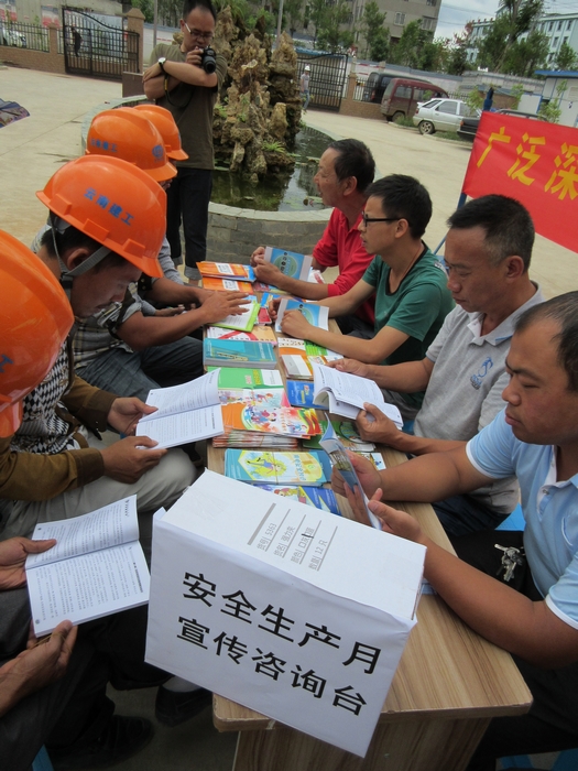 2015年6月16日,第三直管部澄江撫仙湖龍潤園一期回遷房建設(shè)項(xiàng)目部組織現(xiàn)場勞務(wù)人員開展“安全生產(chǎn)月”宣傳咨詢?nèi)栈顒?dòng)。 項(xiàng)目管理人員、建設(shè)方現(xiàn)場代表、監(jiān)理公司代表在活動(dòng)現(xiàn)場向勞務(wù)工友們提供了安全生產(chǎn)基本知識(shí)咨詢服務(wù),對日常勞動(dòng)安全防范注意事項(xiàng)、云南建工集團(tuán)施工現(xiàn)場16條禁令、項(xiàng)目常規(guī)危險(xiǎn)源辨識(shí)、項(xiàng)目危險(xiǎn)源警示通報(bào)等安全知識(shí)...