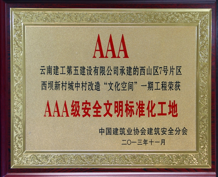 文化空間項目喜獲2013年“AAA級安全文明標(biāo)準(zhǔn)化工地”