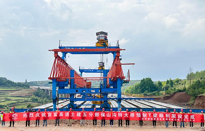 宣富高速公路項(xiàng)目五分部完成保山溝特大橋全部T梁架設(shè)工作