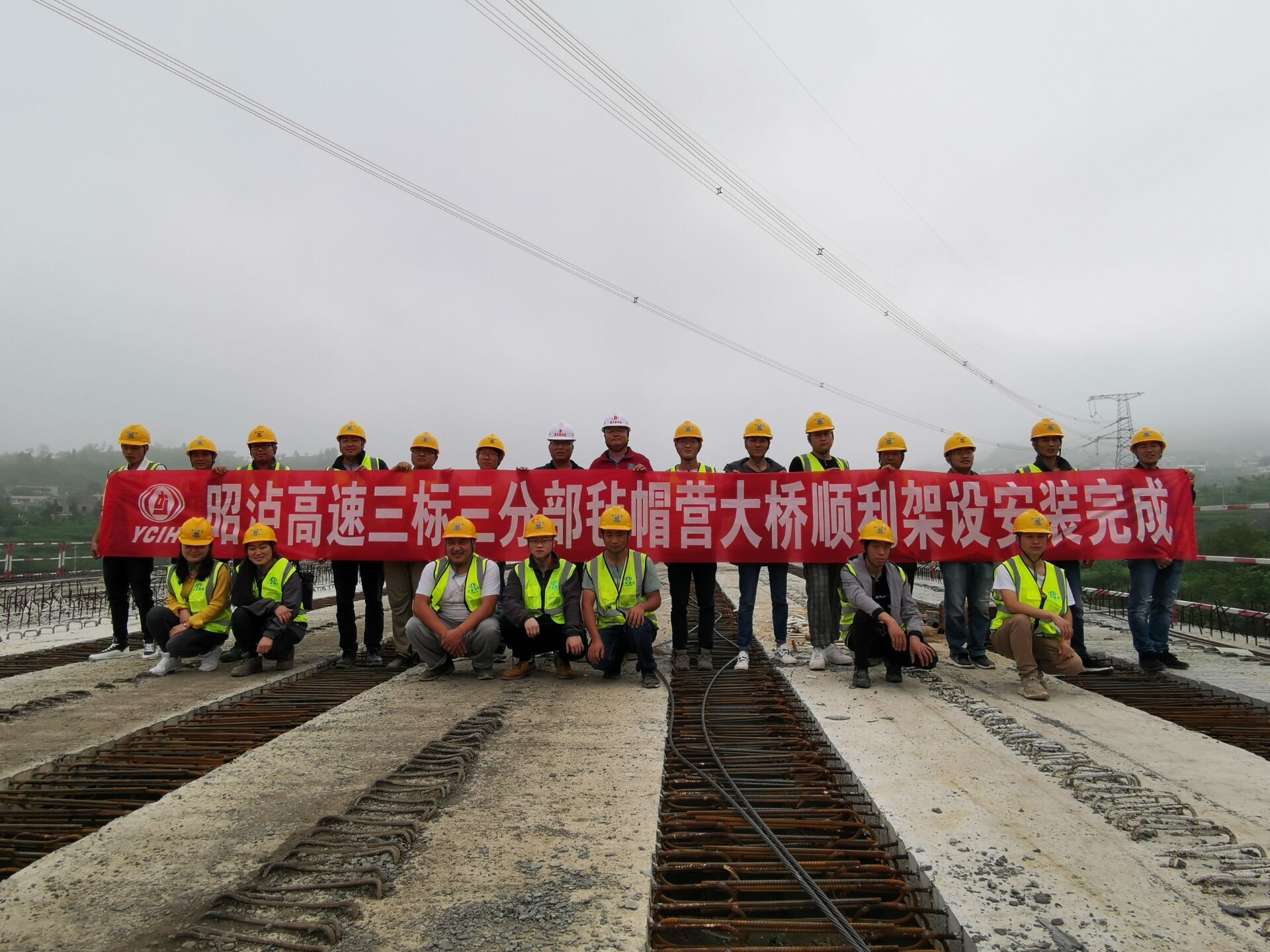 路二氈帽營大橋預制T梁順利吊裝架設完成