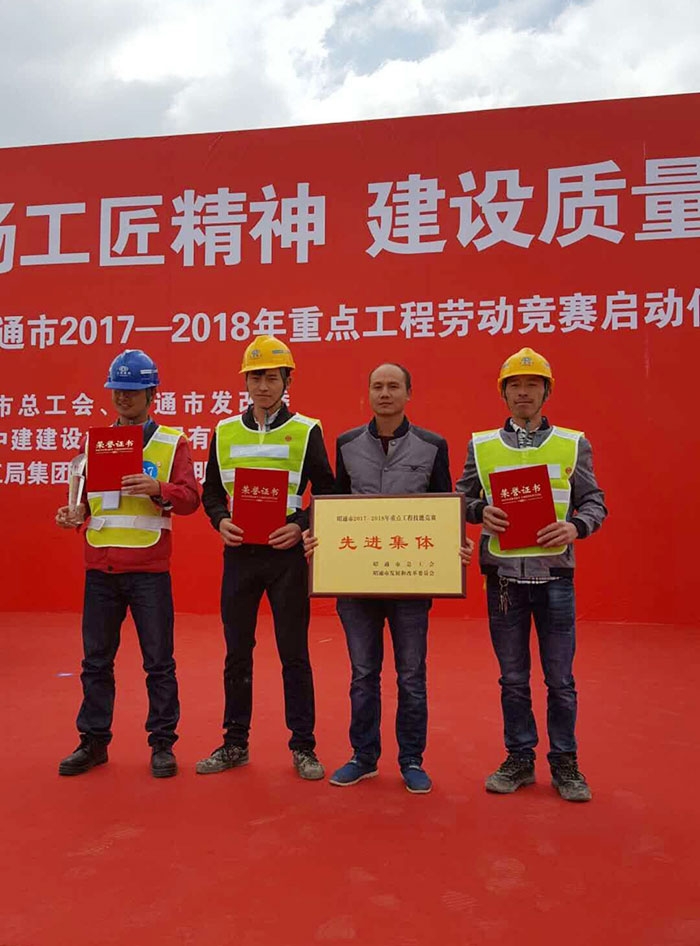 11月3日上午,黨的十九大精神宣講進(jìn)企業(yè)進(jìn)工地暨昭通市2017-2018年重點(diǎn)工程勞動(dòng)競(jìng)賽在昭陽區(qū)文體公園項(xiàng)目啟動(dòng)。 此次競(jìng)賽以“宣傳黨的十九大、弘揚(yáng)工匠精神、建設(shè)質(zhì)量強(qiáng)市”為主題。五〇一直管項(xiàng)目部所施工的昭陽區(qū)省耕塘安置點(diǎn)項(xiàng)目在啟動(dòng)儀式上獲得先進(jìn)集體榮譽(yù)稱號(hào)。 ...
