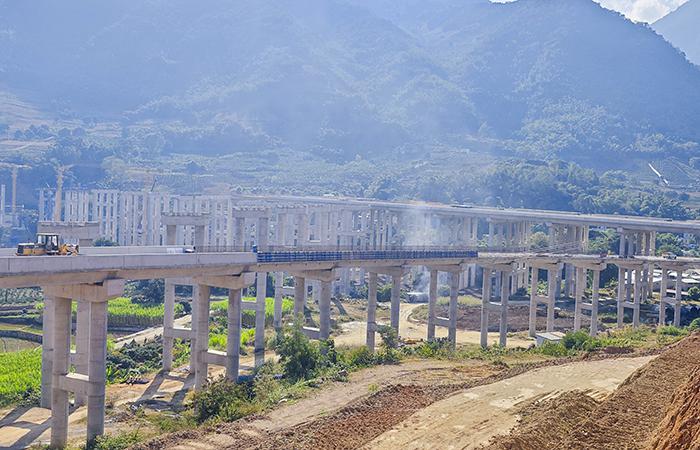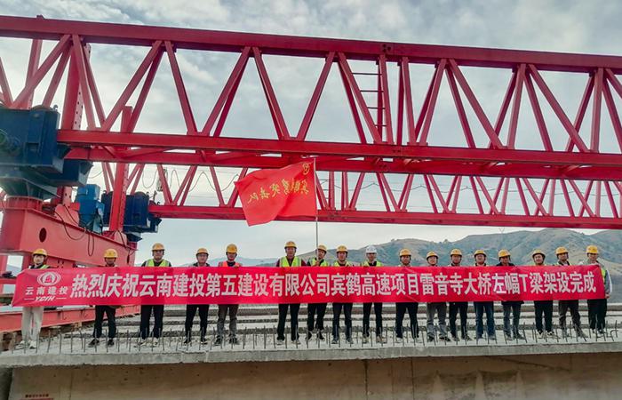 路橋五部賓鶴高速項(xiàng)目雷音寺1#、2#大橋左幅梁板架設(shè)完成