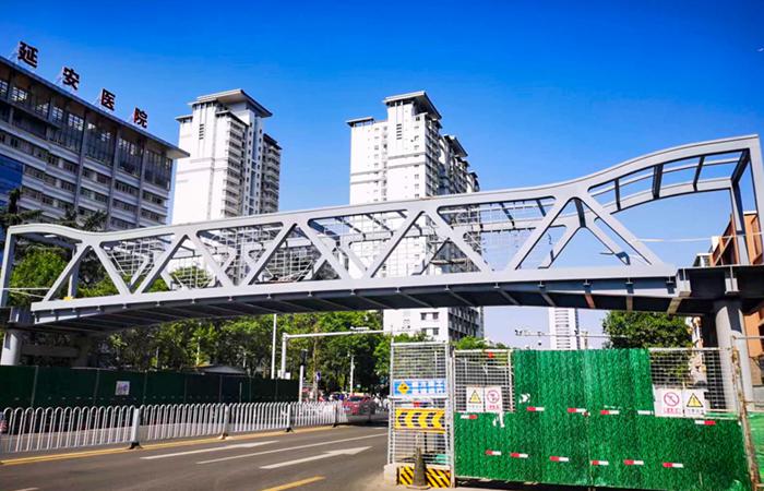 延安醫(yī)院過(guò)街人行天橋主梁吊裝完成