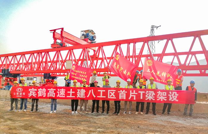 賓鶴高速項目八工區(qū)第一片T梁成功架設