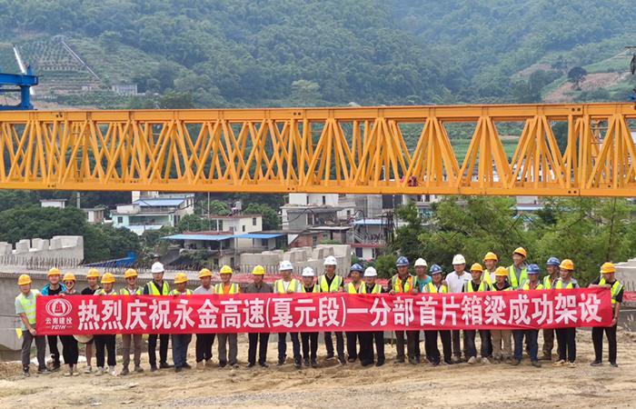 路橋三部永金高速一分部首片箱梁成功架設(shè)