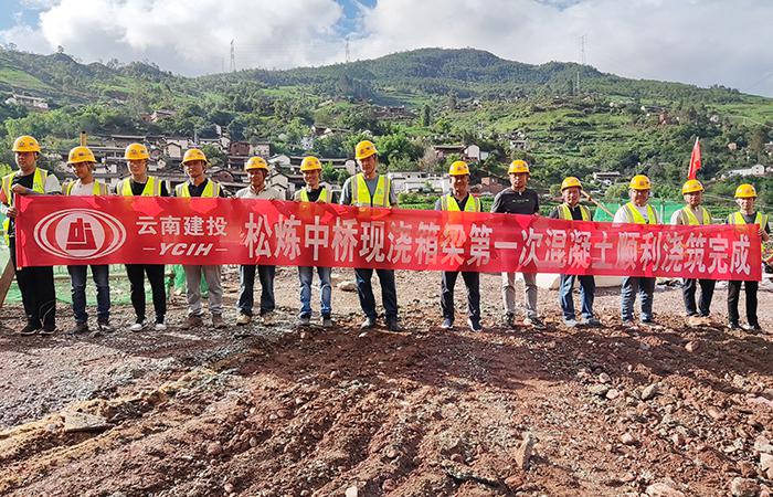 云蘭高速五分部松煉中橋現(xiàn)澆箱第一次混凝土澆筑完成