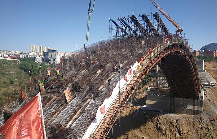 鎮(zhèn)雄三孔景觀橋右幅主拱圈底板混凝土澆筑完成
