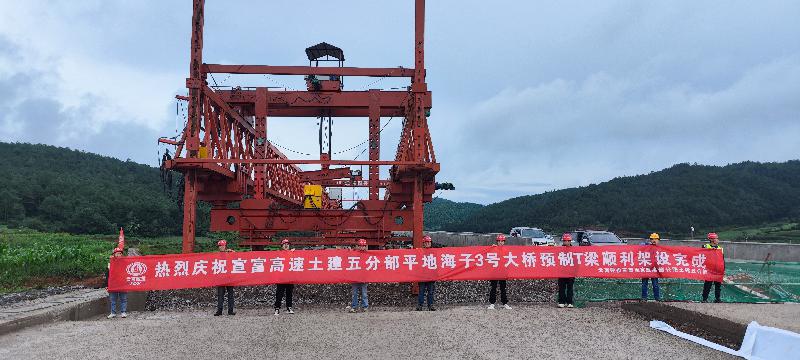 宣富高速公路項目五分部平地海子3號大橋T梁順利架設(shè)完成