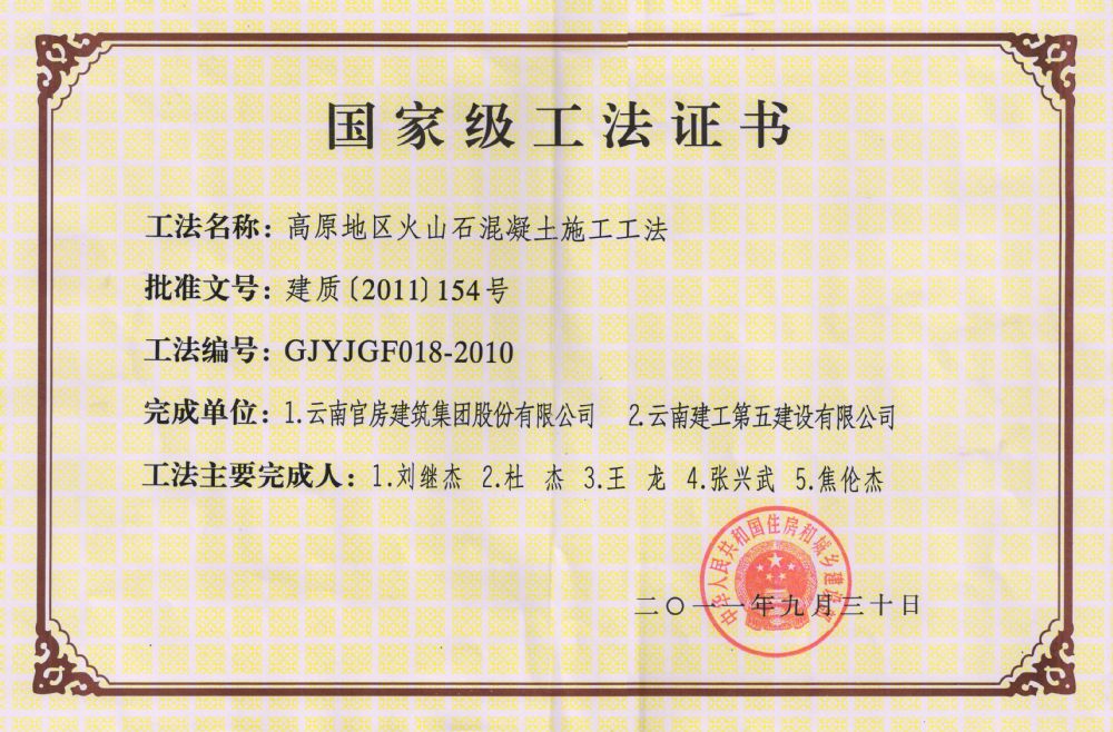 (國(guó)家工法)高原地區(qū)火山石混凝土施工工法