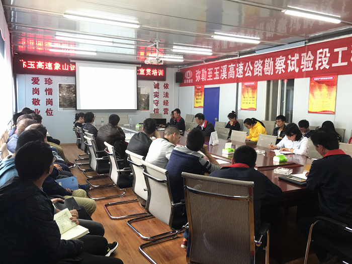 4月24日下午,彌玉高速象山試驗(yàn)段在項(xiàng)目部會(huì)議室召開了2017年“平安工地”建設(shè)宣貫會(huì),項(xiàng)目部全體管理人員以及分包隊(duì)伍負(fù)責(zé)人共30余人參加了會(huì)議。 會(huì)議對(duì)“平安工地”創(chuàng)建要求、 考核標(biāo)準(zhǔn)、云南省公路工程安全生產(chǎn)暨“平安工地”檢查評(píng)價(jià)辦法等內(nèi)容進(jìn)行了說明,主要講解了施工現(xiàn)場布設(shè)、安全防護(hù)、臨時(shí)工程、橋梁工程、隧道工程的考評(píng)標(biāo)...