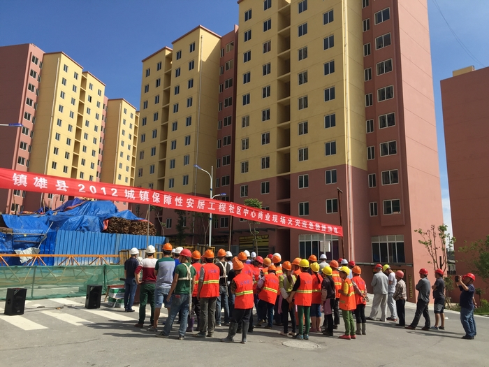 鎮(zhèn)雄縣2012年城鎮(zhèn)保障性安居工程社區(qū)中心商業(yè)項(xiàng)目進(jìn)行火災(zāi)應(yīng)急救援演練
